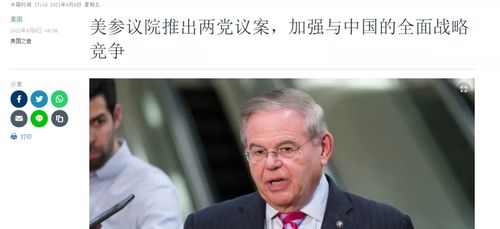 其次,美国国会一些政客在接受媒体采访,谈论这一议案时,都提到将“加强美国与中国开展全面的战略竞争”,认为这是民主共和两党参议员首度共同推出的、与北京开展战略竞争的重要议案。