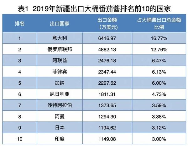 观察者者注意到,根据中国国际贸易促进委员会旗下中国贸易投资网去年4月整理的图表显示,在2019年新疆番茄酱出口国家中,日本排在第十;而在2019年新疆大桶番茄酱出口国家中,日本则排名第九。