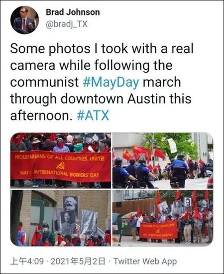 到今年,奥斯汀市的共产主义者每年5月1日在当地发起游行已经是第七个年头。
