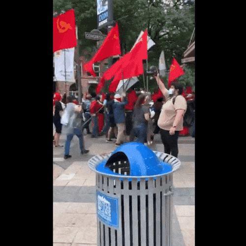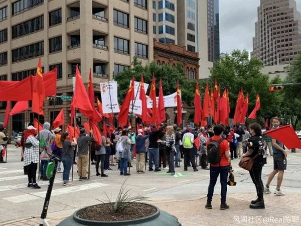 据美国新闻网站“红州”(RedState)报道,当地时间5月1日,国际劳动节当天,一群共产主义者在得克萨斯州的奥斯汀市发起群众游行,高举代表共产主义的“镰刀锤子”旗帜。