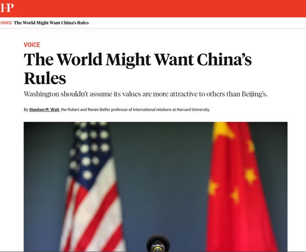 哈佛大学国际关系学教授斯蒂芬·瓦尔特在美国《外交政策》网站撰文指出,美国在认为国际秩序不利于自己之时,就按自己的意愿忽略、逃避或改变秩序。美国应该诚实地承认,自己就是认可“强权即公理”和“赢者通吃”。