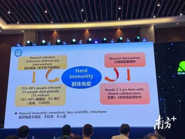 在发言中,钟南山围绕“群体免疫”发表了看法。