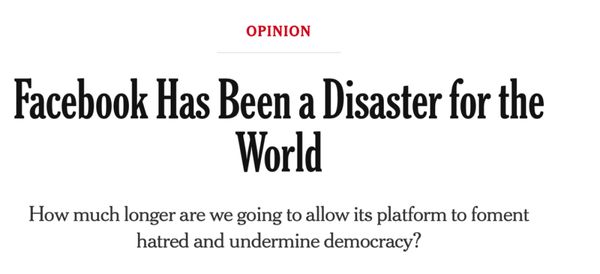 《纽约时报》质问:我们还能允许Facebook在破坏民主、制造仇恨的路上走多久?