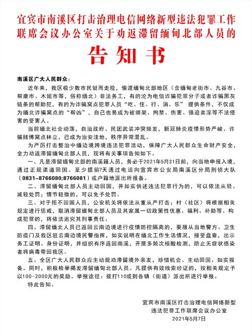 四川省宜宾市南溪:5月31日前滞留缅北人员务必回国