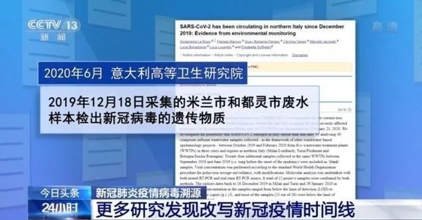 意大利高等卫生研究院去年6月发表公报说,研究人员在2019年12月18日取样的米兰市和都灵市废水中检测到了新冠病毒的遗传物质。