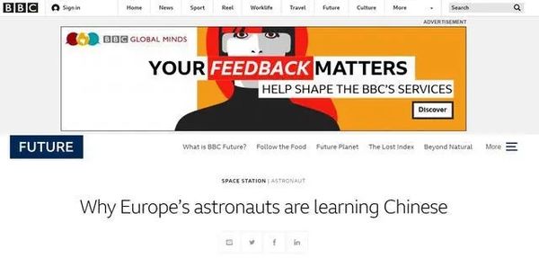 英国广播公司BBC在2018年还曾发布了一篇文章,提问“为什么欧洲的宇航员都在学习中文?”,而答案正是——他们都想去中国天宫空间站,一方面是为了能够和中国航天员无障碍交流,协同进行一系列太空科研项目,不然可能连驾驶舱坐哪边都不一样;另一方面也是最关键的,不学中文他们根本看不懂指令。