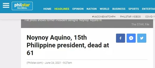 菲律宾明星出版集团网站:菲律宾第15任总统阿基诺三世去世,终年61岁