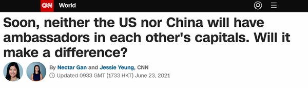 对此,CNN认为,这种罕见的外交关系真空,可能再次体现了目前中美关系这个全世界最重要的双边关系,出了问题。