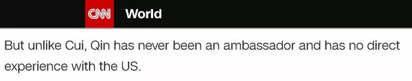 中国方面,CNN则称此前有媒体传出的消息是外交部副部长秦刚会出任中国驻美大使。但CNN指出他之前并未出任过大使的职务,也不像崔天凯那样有关于美国的直接经验。