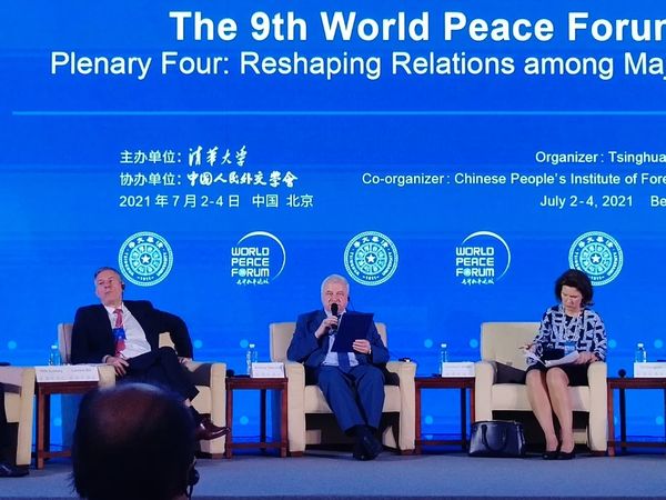 清华大学主办的第九届世界和平论坛7月4日下午举行主题为“重塑大国关系”的大会讨论。面对现场西方国家驻华大使“中国共产党将自己的意识形态强加于人”的说法,俄罗斯驻华大使杰尼索夫再次力挺中国。