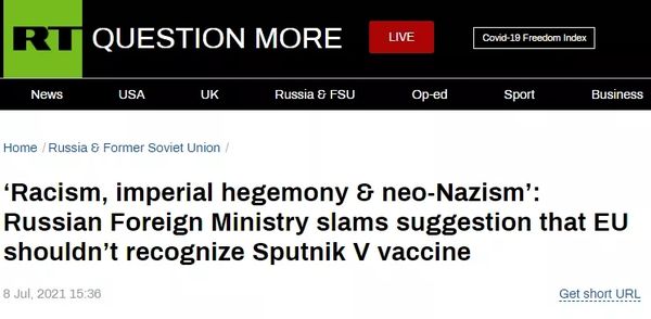 RT称,这场辩论正值欧盟驻俄罗斯大使马库斯·埃德雷尔宣布,欧盟已邀请俄罗斯共同探讨将双方新冠疫苗纳入对方的接种认证体系。这位外交官说,双方都“需要找到解决方案”。报道称,目前的形势是,俄罗斯的疫苗不被欧盟接受,西方疫苗也不被莫斯科承认。