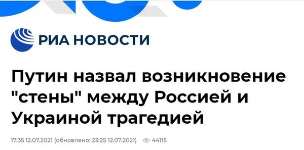 在克里姆林宫12日发布的文章中,普京表示,近年来俄乌之间出现的“隔阂”是个“悲剧”,这首先是双方在不同历史时期所犯错误的结果,也是一直寻求破坏俄乌团结的“那些势力”开展的有针对性的工作的结果。