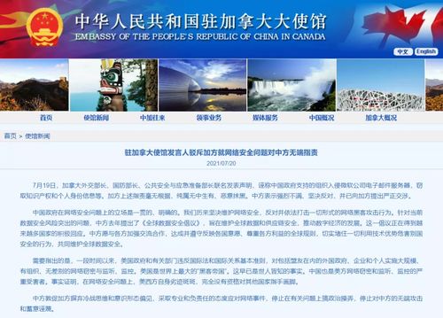 驻加拿大使馆发言人驳斥加方就网络安全问题对中方无端指责