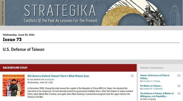 斯坦福大学胡佛研究所是美国西海岸大名鼎鼎的保守派智库,很多中国人知道它,是因为那里有个著名的中国现代史档案馆,藏有包括两蒋(蒋介石、蒋经国)日记、宋子文档案等诸多国民党高层的资料,可以说是研究中国近现代史的宝库。其实,它的全称是胡佛战争、革命与和平研究所,研究战争才是它的老本行,这不,它最近就搞了一场关于“美国如何防卫台湾”的讨论,挑起非常火爆的话题。