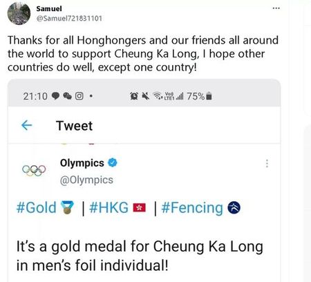 在境外的社交网络上,一些乱港分子更是为路透社将香港在报道中称作一个“国家”感到颇为激动,甚至还想借张家朗夺金一事煽动香港和内地的对立。