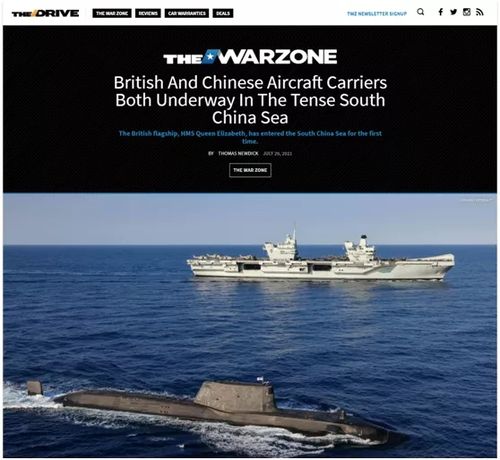 英国航母近日进入南海,美媒迅速炒作"中英航母都在南海",还配上了“同框照”