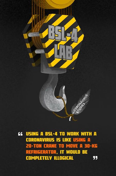 格拉斯强调:“操作P4实验室是非常昂贵的,无论在金钱还是时间上。由于安全方面的限制,操作需要穿戴压力很大的‘太空服’行走,实验则需要更长的时间进行,因此人们不会使用P4处理生物安全等级三级的病原体,也不会使用P3实验室处理生物安全等级二级的病原体,这是常识。冠状病毒(包括新冠病毒)属于二级或三级病原体,从未属于过四级。”