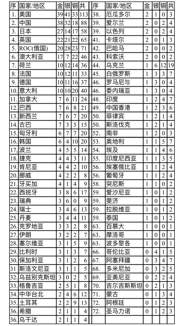 东京奥运会落幕,美国保住金牌总数第一的位置
