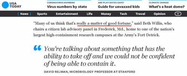 2、包括《今日美国》在内的美国媒体,曾多次报道德特里克堡生物实验室的安全问题,甚至有德特里克堡的人员当时表示,这里没有发生重大事故只是因为“运气好”;