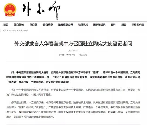 立陶宛外交部声称本着一个中国原则 “决心”发展同台湾的互利关系,华春莹回应 问:中方宣布召回驻立陶宛大使后,立陶宛外交部回应称对中方举动表示“遗憾”,还称本着一个中国原则,……
