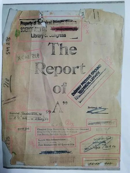 美国国会图书馆科学技术部档案室保存的《炭疽菌实验报告》封面及部分内容。