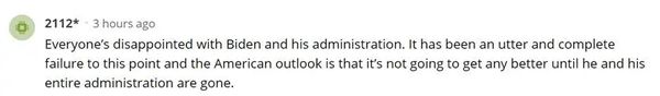 “每个人都对拜登和他的政府感到失望。在这点上,是一个彻底的失败。展望一下,得直到他和他的整个政府都下台,美国才能变更好。”