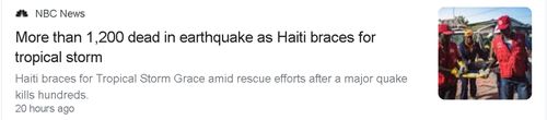 这个国家,就是前两天刚刚遭遇了7.3级强烈地震、目前已经死亡超过1200人,却马上又要遭到热带风暴袭击的海地。