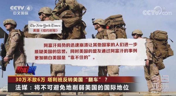 美国《纽约时报》文章指出,阿富汗局势的迅速崩溃让其他国家的人们进一步质疑美国的信誉,同时美国的盟友通过阿富汗的事例更加明白美国是“靠不住的”。
