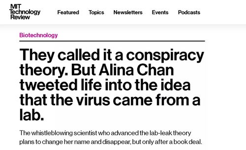 (图为美国《麻省理工科技评论杂志》在报道一名炒作新冠病毒来自武汉病毒所的“科学家”,并用“吹哨人”一词描述了此人)