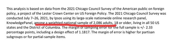刀哥在找到了这份民调的原文后,却发现这个民调只对美国所有州18岁以上的2086名成年人进行了加权抽样,样本量可谓非常小。