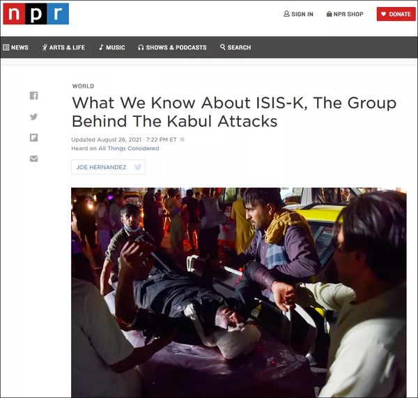 而美国全国公共广播电台(NPR)指出,“ISIS-K”其实早就计划针对美方人员和其他人士发动袭击,这也是为何美国总统拜登不断重申要按照8月31日的最后期限完成撤军,他曾多次在演讲中提及“ISIS-K”。