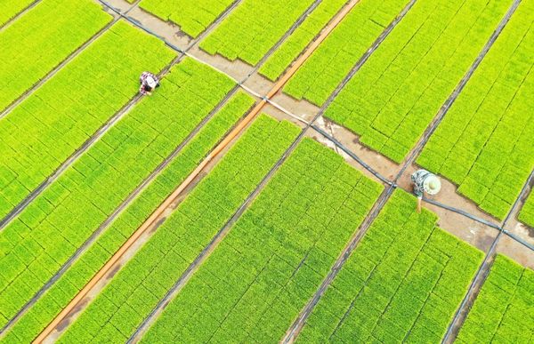 安徽安庆:农场科技示范园工管护水稻秧苗。图片来源:视觉中国