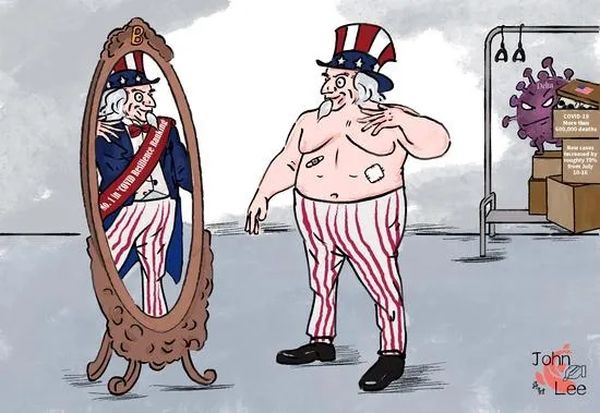 回到美国的疫情吧。我们最近看到:美国疫苗接种率几乎完全不再变化了。因为人口中有30%左右的美国人是反对疫苗的。彭博社这次排名的标准呢,很快遭到打脸。它高度肯定所谓“经济重新开放度”、“放松封锁程度”等指标,还有讲的“餐馆爆满,接种过疫苗的人不再被要求戴口罩,美国人又开始度假了,因为接种率达到了人口的一半”等等,都成了天大的笑话,用中国网民的话说,就是“排名一出,笑倒一片”。
