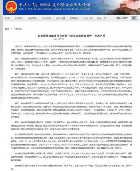 中国驻美国大使馆28日在一份声明中强调,该报告是由美情报部门主导杜撰的,毫无科学性和可信度可言。美方声称中方不透明,这完全是为其推动政治化、污名化寻找借口。
