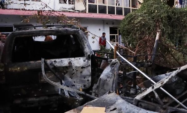 当地时间29日,美军无人机在喀布尔对一辆汽车实施空袭。