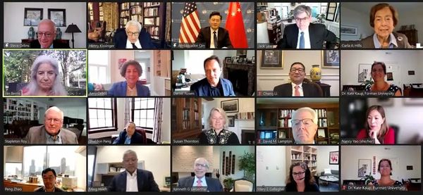 8月31日,美中关系全国委员会董事会为秦刚大使履新举行的视频欢迎活动 图源:中国驻美国大使馆