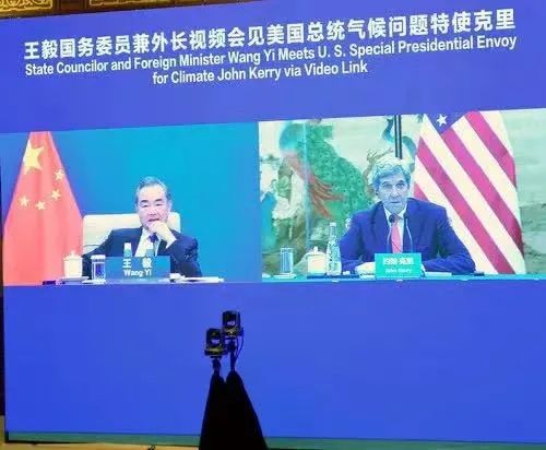 国务委员兼外长王毅1日应约视频会见正在天津进行中美气候变化磋商的美国总统气候问题特使克里。