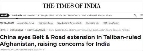 印度报业托拉斯(PTI)9月3日称,随着塔利班控制阿富汗和美军的撤离,中国“似乎正在制定将其‘一带一路’延伸到阿富汗的计划。”