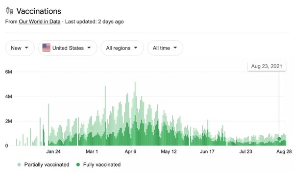 美国目前正式批准辉瑞疫苗,明面上是3期临床的数据已经完整了,暗里却是希望正式批准之后,反疫苗的人可以放弃抵抗,接受疫苗。但是,这个希望可能只是奢望,目前美国疫情那么严重,不接种疫苗的,都有着某种强烈的“信仰”,不见得正式批准之后,这些人会放弃信仰。果不其然,在辉瑞疫苗正式批准之后,单日疫苗接种数量也没有看到增量。