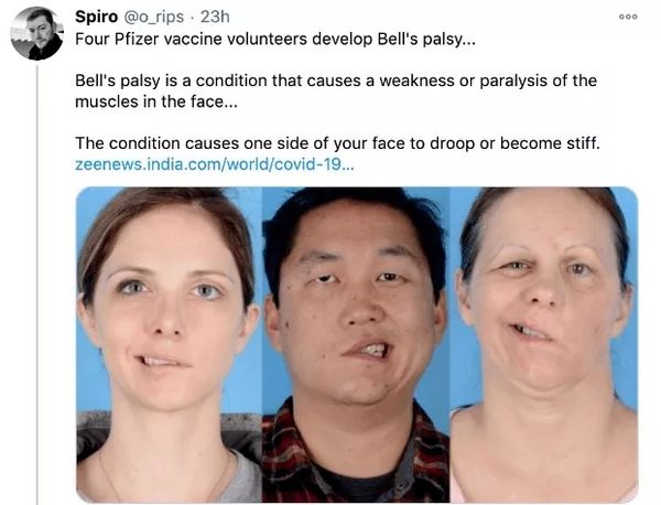 ▎媒体报道了多例接种辉瑞疫苗后出现的面瘫问题