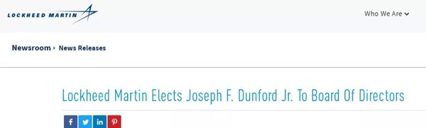 1、 曾在2013年-2014年间在阿富汗担任美军指挥官,并于去年退休的陆战队上将小约瑟夫·邓福德(Joseph F. Dunford Jr),此人目前已加入美国国防部最大军火商洛克希德·马丁公司,成为了该公司的董事。但他称自己如今80%的时间是用来“服务老兵”的,并称自己之前在阿富汗只是服从总统的命令。