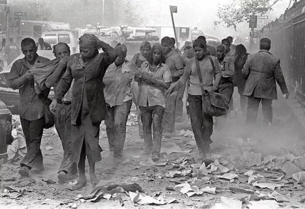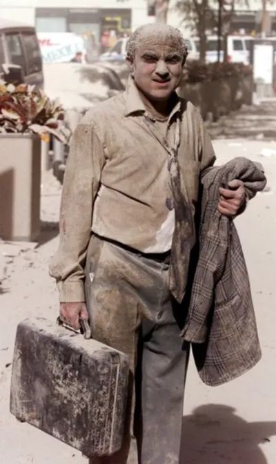 灾难之后,有一张著名的新闻照片,一位从头到脚被粉尘覆盖的白领女性,刚刚从世贸中心楼里逃了出来,被记者迎面撞见,拍下当时的一幕。相片上的主角名叫玛西·波德斯,2001年灾难发生的时候她在北楼81层工作,在第一声爆炸后,玛西从大楼里逃了出来,全身精致的打扮全被粉尘蒙上了灰。随着照片被广泛传播,她被称为“尘埃女士”。