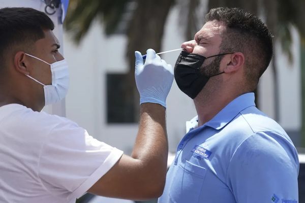今年7月26日,一名美国迈阿密民众接受新冠检测 东方IC图