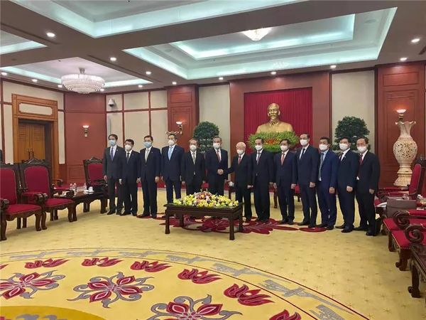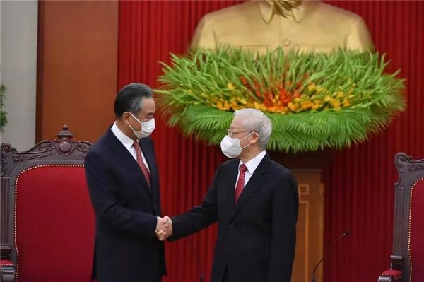 当地时间2021年9月11日,越共中央总书记阮富仲在河内会见对越南进行正式访问的国务委员兼外长王毅。