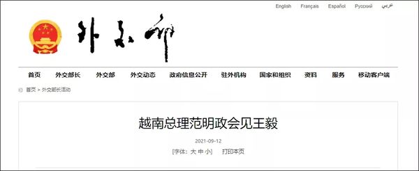 范明政请王毅转达对中国领导人的诚挚问候,热烈祝贺中国共产党百年华诞和中华人民共和国即将迎来72周年国庆。表示越中双方都坚持走社会主义道路,两国同志加兄弟的关系是越中两党、两国和两国人民的宝贵财富,应得到进一步巩固和深化。越方永远铭记并感谢中方为越南革命和建设事业提供的巨大帮助。强大繁荣的中国是越南的机遇,中国的发展为越提供了可资借鉴的发展模式和重要经验。越方将对华关系作为对外政策头等优先,愿同中方加强两党两国高层和各领域交流合作,增进战略互信和人民友谊。感谢中方向越方提供疫苗援助,这是“雪中送炭”,体现了患难真情。越方愿学习借鉴中方抗疫经验,全面推进抗疫合作。保持两国经贸、投资合作发展势头,维护产业链、供应链稳定,并为中方在越投资提供便利。越方重视中国日益提高的国际地位和影响,高度赞赏中方在国际地区事务中发挥的重要作用,愿同中方加强在联合国、东盟、亚太经合组织等机构中的协调合作。双方要落实好高层共识,妥善处理海上问题,保持海上局势稳定,循序开展海上合作,推动“南海行为准则”商谈,为维护地区和平作出贡献。