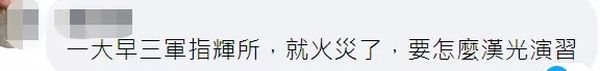 有网友提到今日一早台媒爆出消息:统筹台军战时最高指挥中心的“台军联合作战指挥中心”10日下午失火,为此对“汉光演习”表示担心:还要怎么“汉光演习”。↓