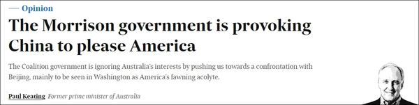 这段话出自《澳大利亚金融评论》9月3日发布的基廷署名文章:“莫里森政府正为取悦美国而激怒中国”。