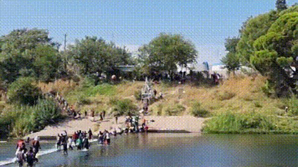 上万名非法移民聚集在美得州边境大桥附近,场面惊人!
