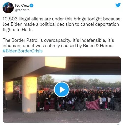 克鲁兹称,由于白宫最近决定暂停将海地难民驱逐出境,移民人数在一周内增长了10倍以上。“700人变成了10503人,这是一场灾难……这是政治决策所导致的后果,乔•拜登明天只需遵守法律并恢复驱逐出境航班,就可以结束这一局面。”