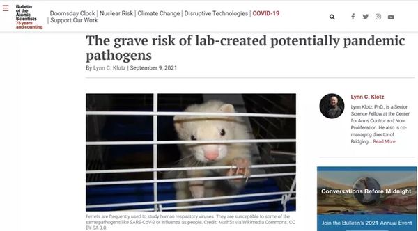 2021年9月9日,美国军备控制与不扩散中心高级研究员林恩·克洛茨在《the Bulletin》杂志上发表了一篇题为《实验室制造的潜在流行病病原体的严重风险》的文章,披露了美国研究人员在复活病毒实验,导致病毒从实验室泄漏的种种细节。